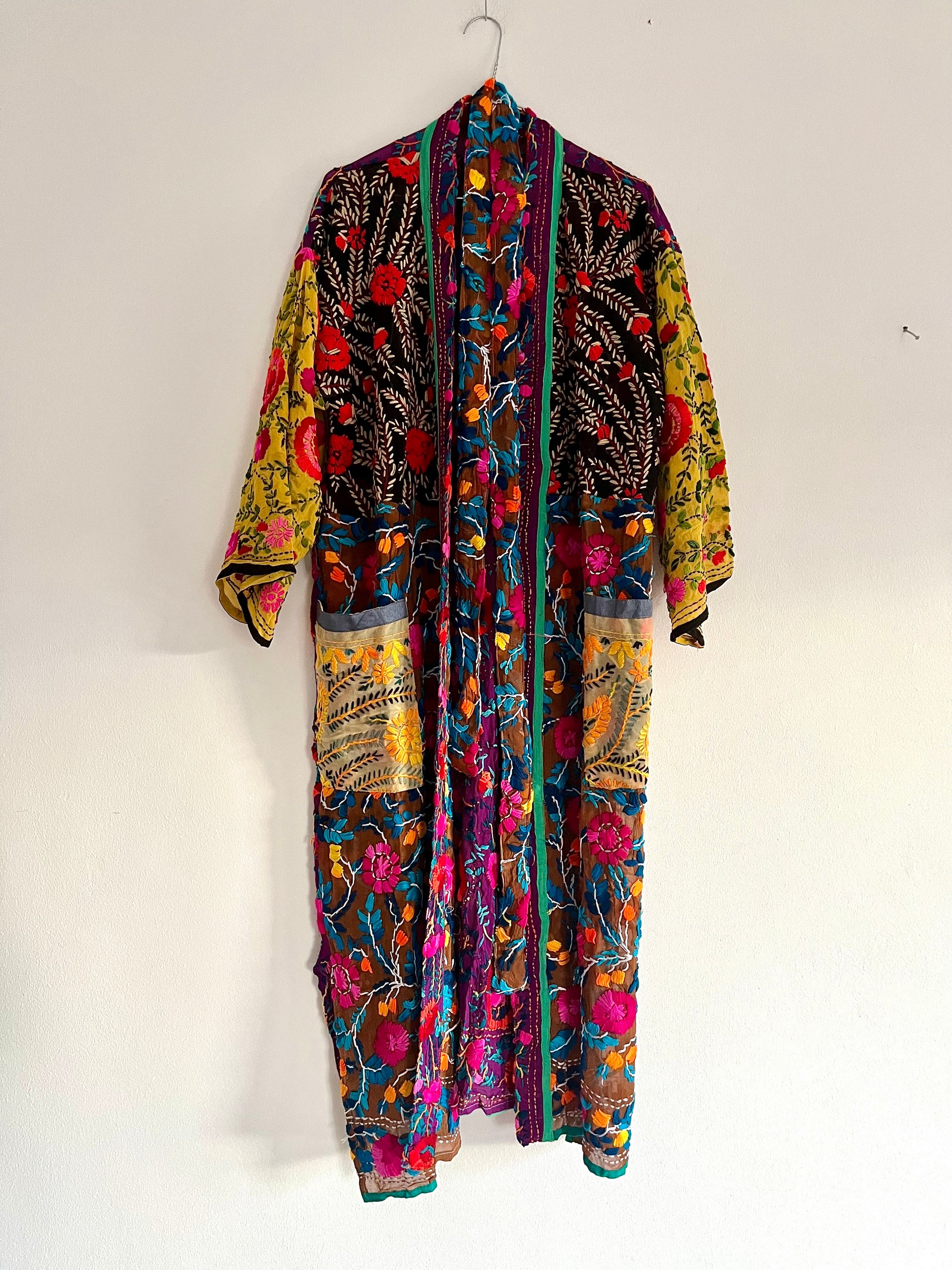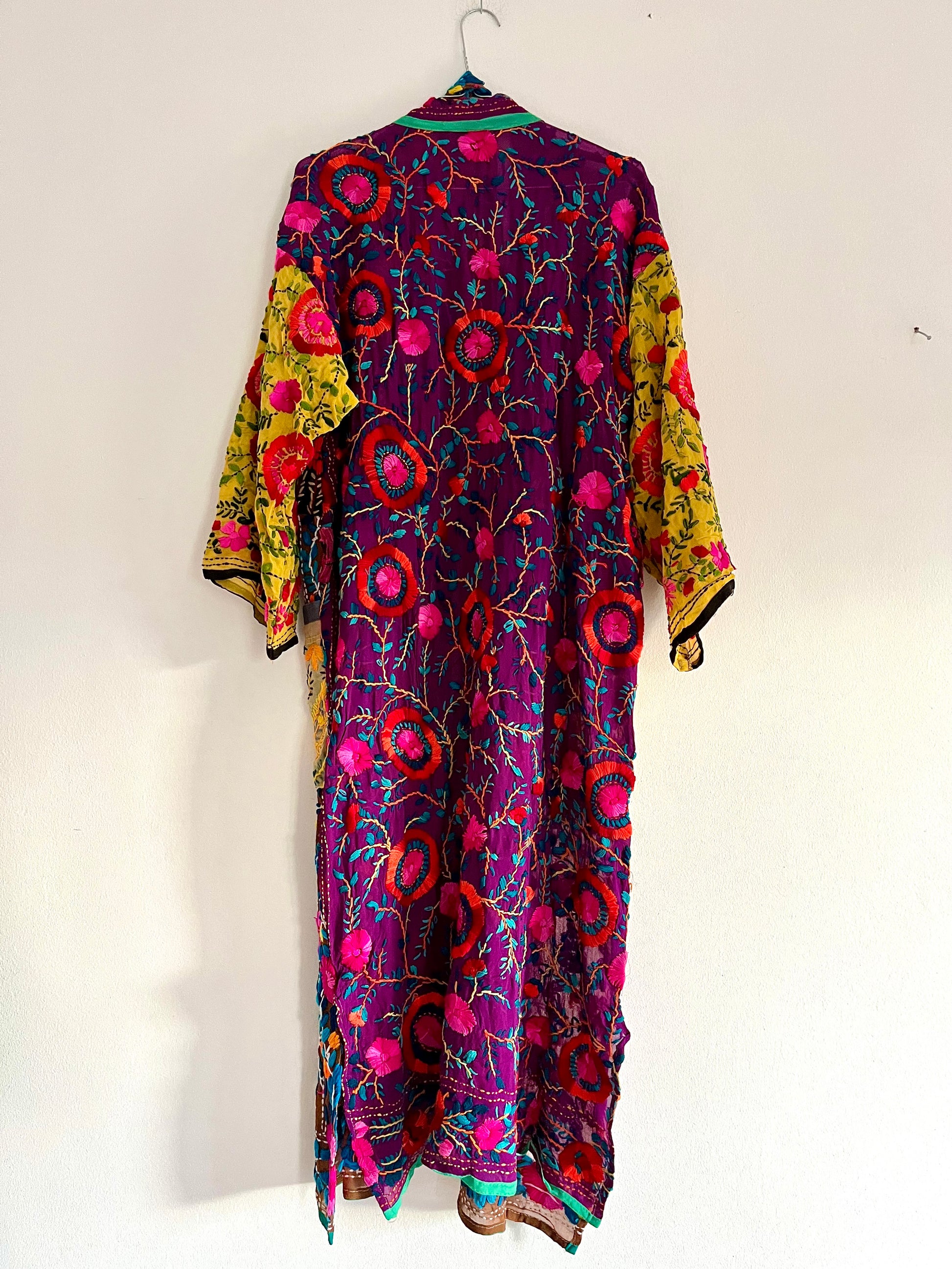Georgette 100% pura, ricamata a mano con lana phulkari.